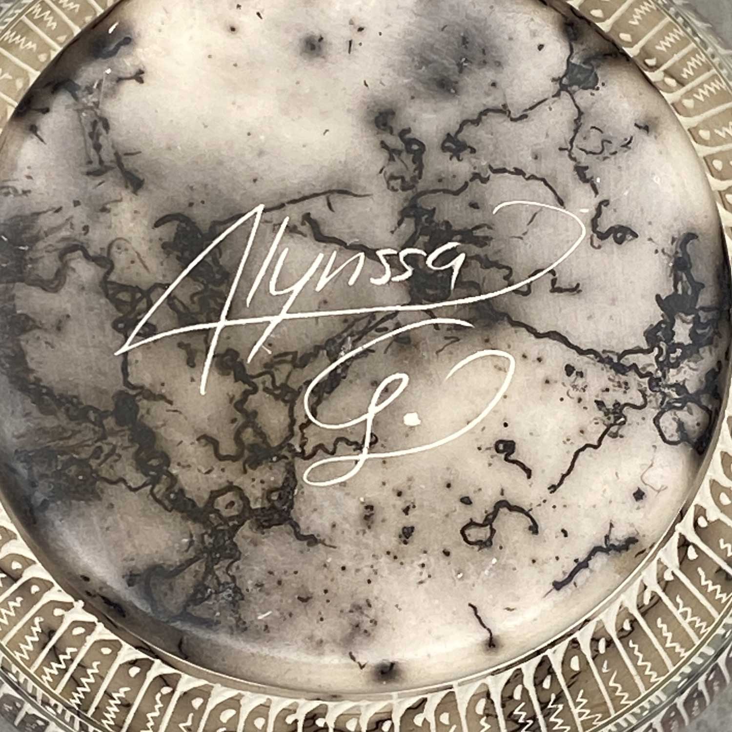 - The bottom of the piece is signed by the artist, Alynssa G. (Alynssa Gilmore), confirming its authenticity.